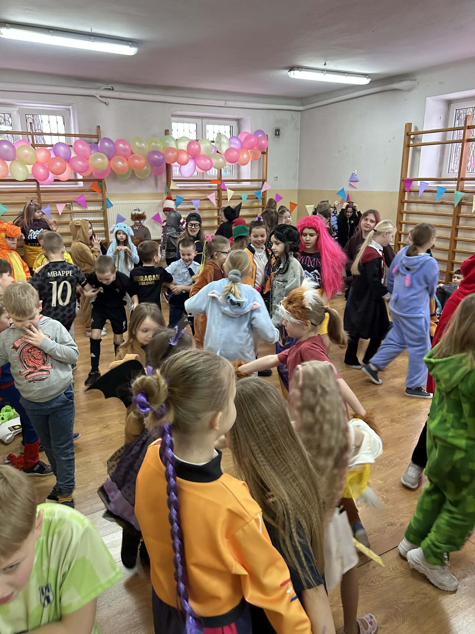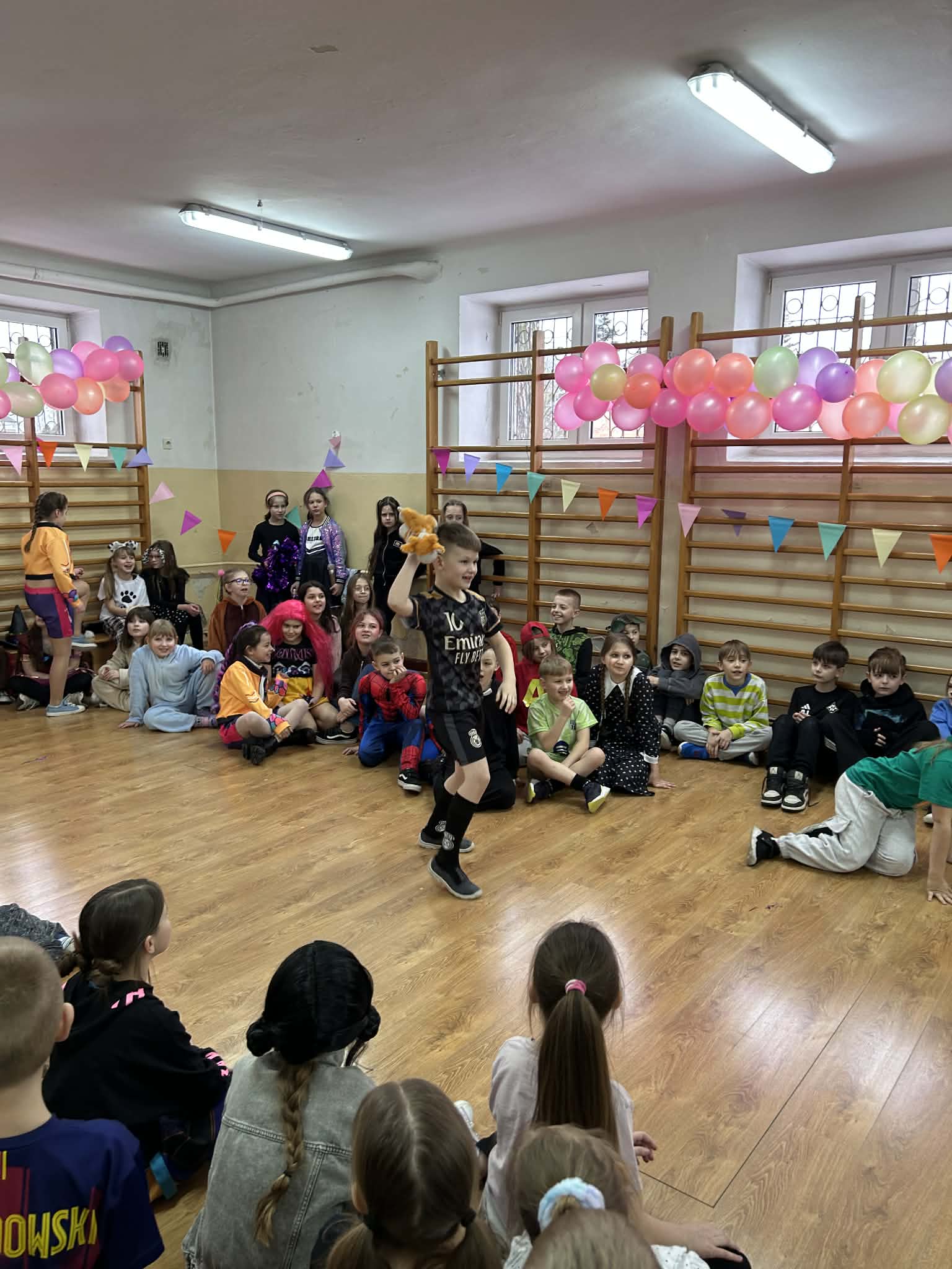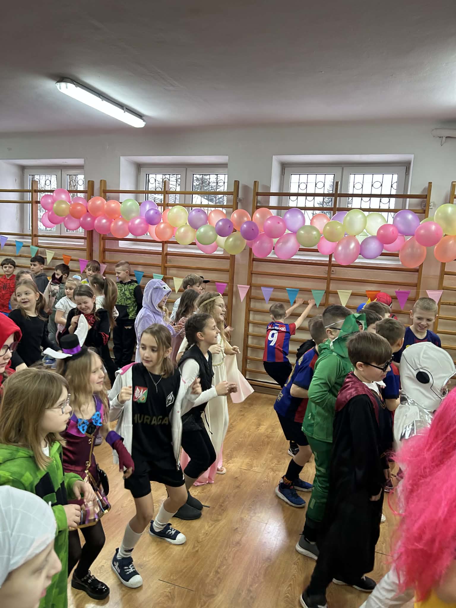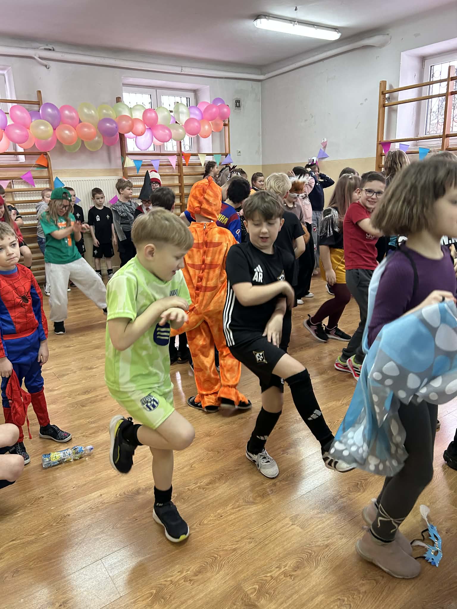 17 lutego w naszej szkole odbył się długo wyczekiwany bal karnawałowy dla uczniów klas 1–3. Sala gimnastyczna zamieniła się w kolorową, pełną radości przestrzeń, w której królowały uśmiechy i fantastyczna zabawa. Dzieci zaprezentowały przepiękne i bardzo różnorodne stroje. Wśród uczestników można było spotkać księżniczki, superbohaterów, piłkarzy, zwierzątka, postacie z bajek oraz wiele innych kreatywnych przebrań. Pomysłowość i zaangażowanie w przygotowanie kostiumów zrobiły ogromne wrażenie! Podczas balu uczniowie bawili się przy muzyce, brali udział w wspólnych tańcach i konkursach. Dodatkową atrakcją była fotobudka, którą zasponsorowała Rada Rodziców. Korzystanie z niej sprawiło dzieciom mnóstwo radości, a wykonane zdjęcia będą wspaniałą pamiątką z tego wyjątkowego dnia dla każdego uczestnika. Po zakończonej zabawie na dzieci czekała miła niespodzianka – pyszna pizza, którą zakupili rodzice. To był dzień pełen uśmiechu, muzyki i niezapomnianych chwil!
