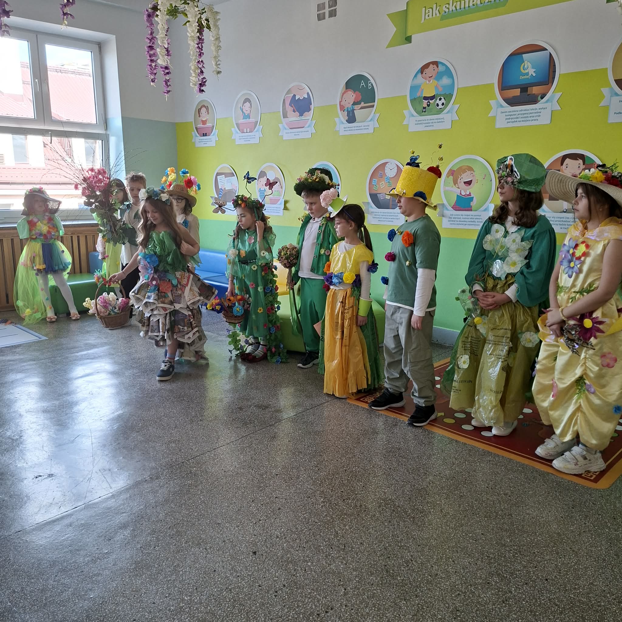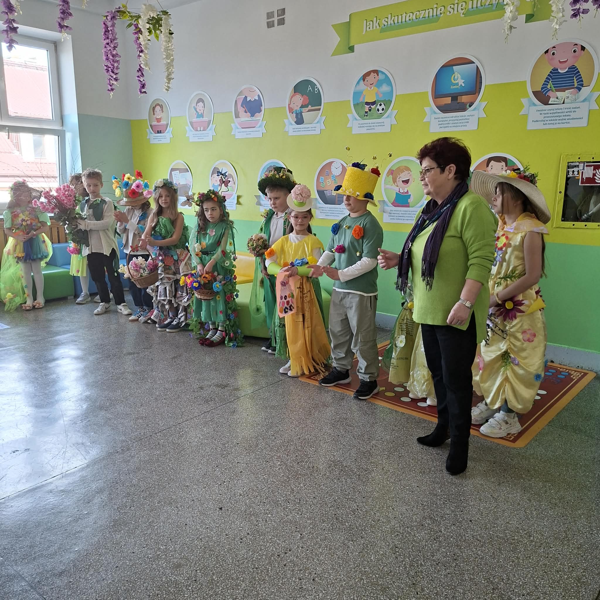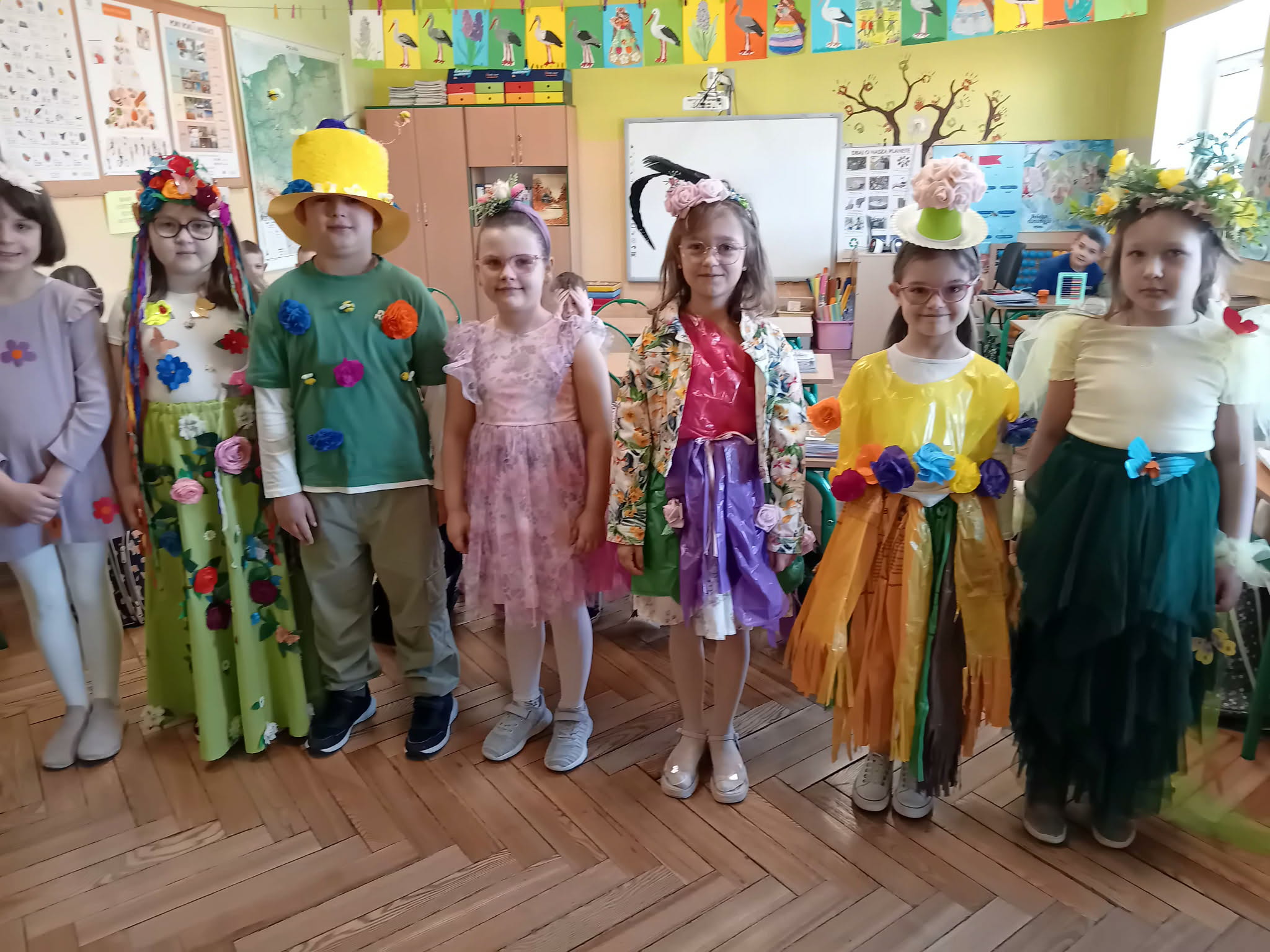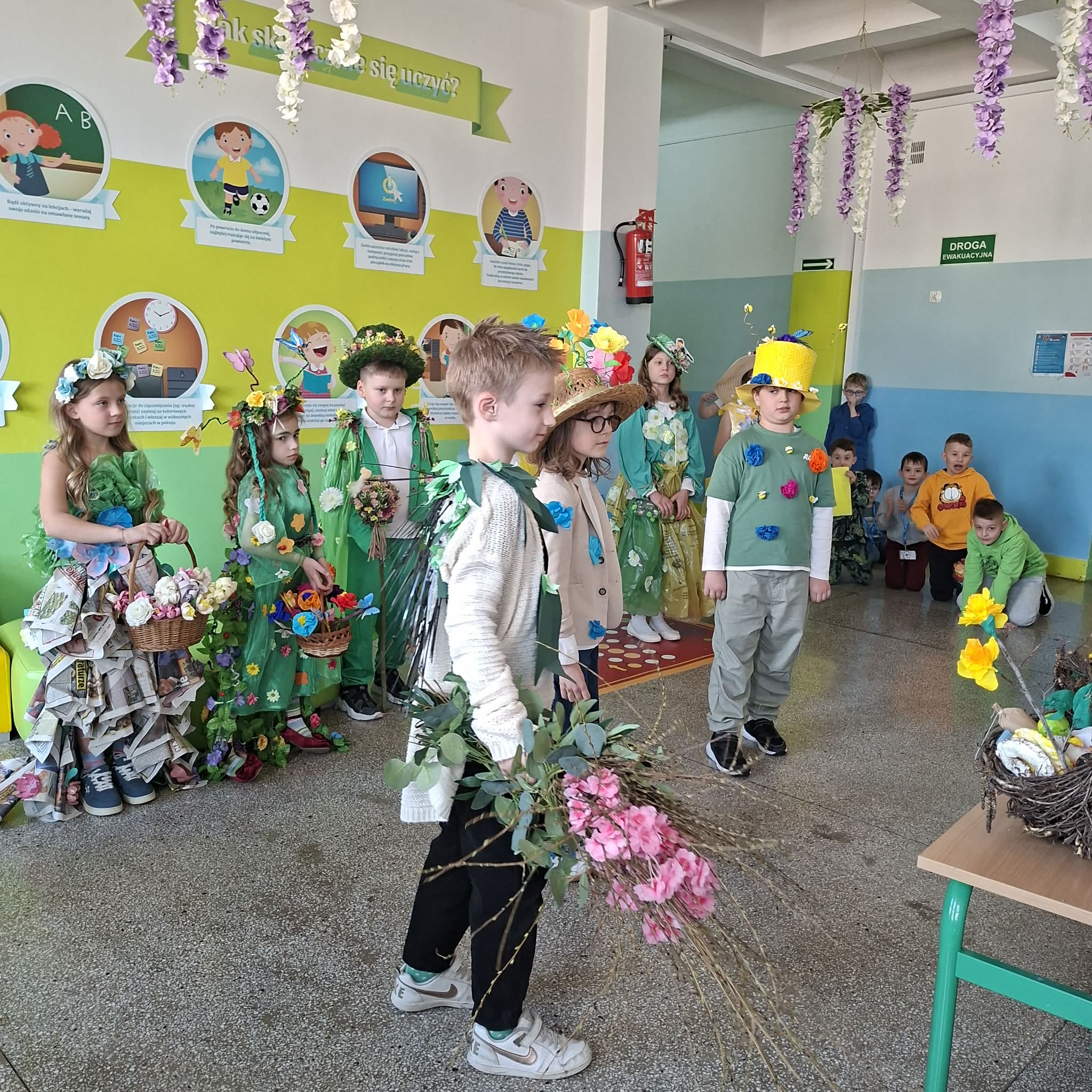 W naszej szkole 23.03.2026 r. odbył się wyjątkowy konkurs „Pani/Pan Wiosna”, który wprowadził wszystkich w radosny, wiosenny nastrój. Przystąpili do niego uczniowie klas 1-3. Dzieci z dużym zaangażowaniem przygotowały barwne stroje, inspirowane budzącą się do życia przyrodą. Na szkolnej scenie pojawiły się piękne kreacje pełne kwiatów, zieleni oraz wiosennych motywów. Uczestnicy mieli okazję zaprezentować nie tylko swoje stroje, ale także talenty i kreatywność. Jury zwracało uwagę na pomysłowość, estetykę wykonania oraz sposób prezentacji.