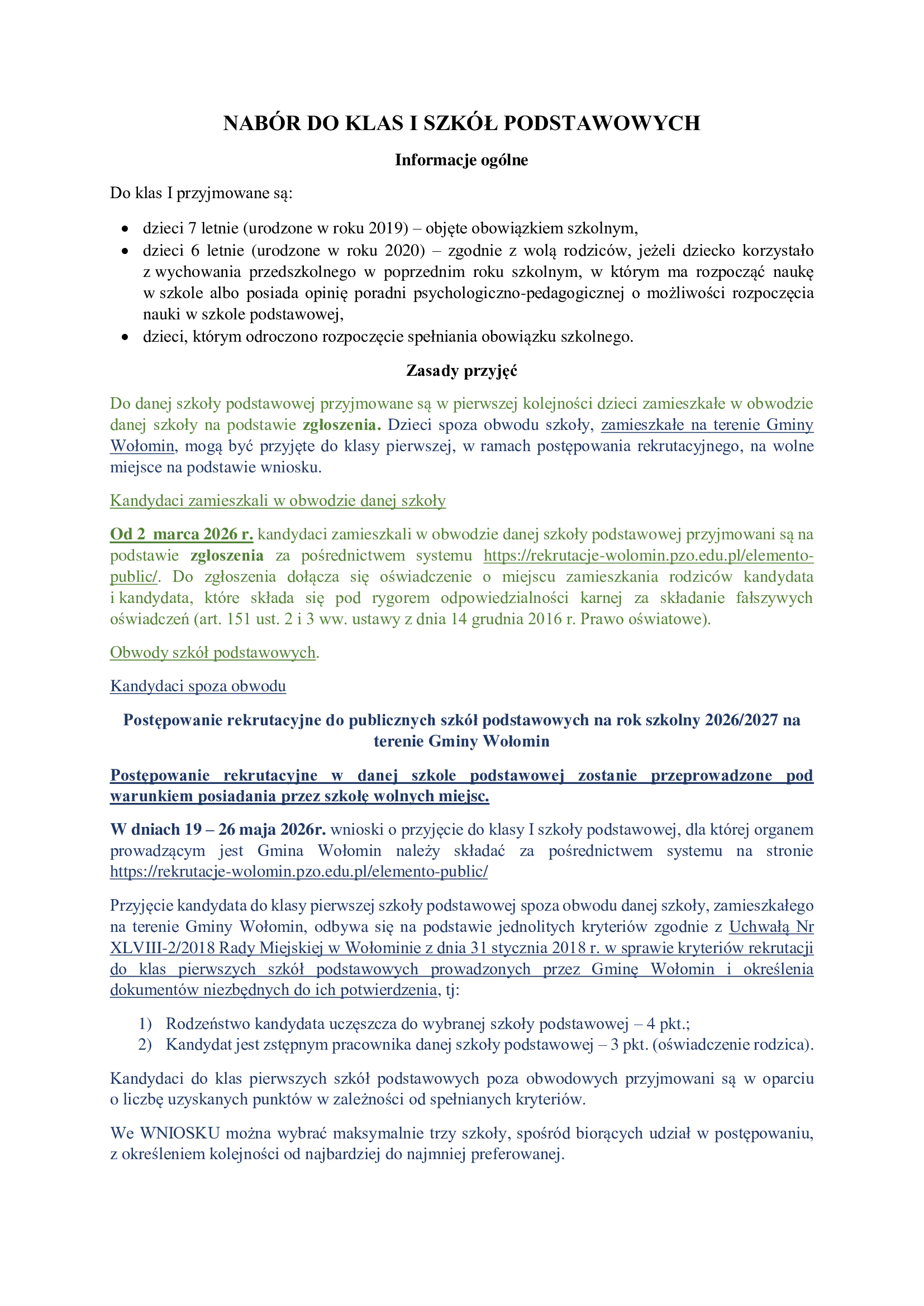 NABÓR DO KLAS I SZKÓŁ PODSTAWOWYCH – Informacje ogólne Opublikowano: 9 lutego 2026 Kategorie: Rekrutacja SP Szkoła podstawowa Zespół Szkolno-Przedszkolny
