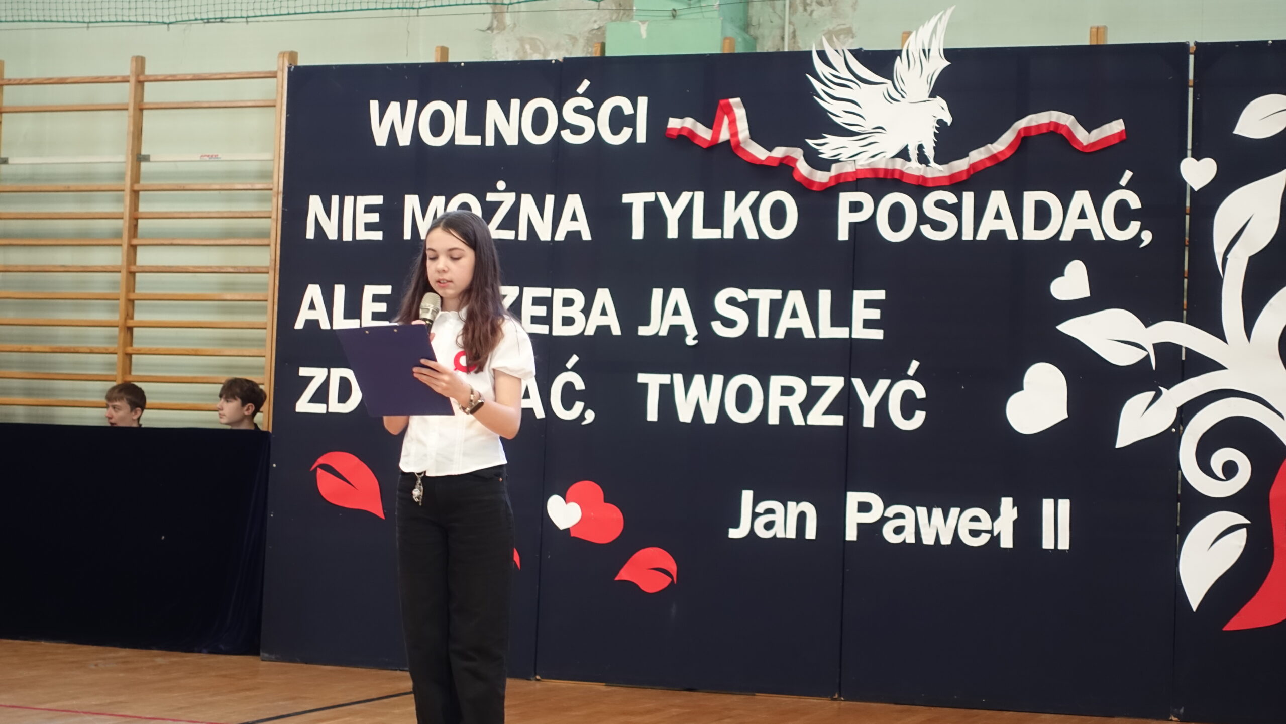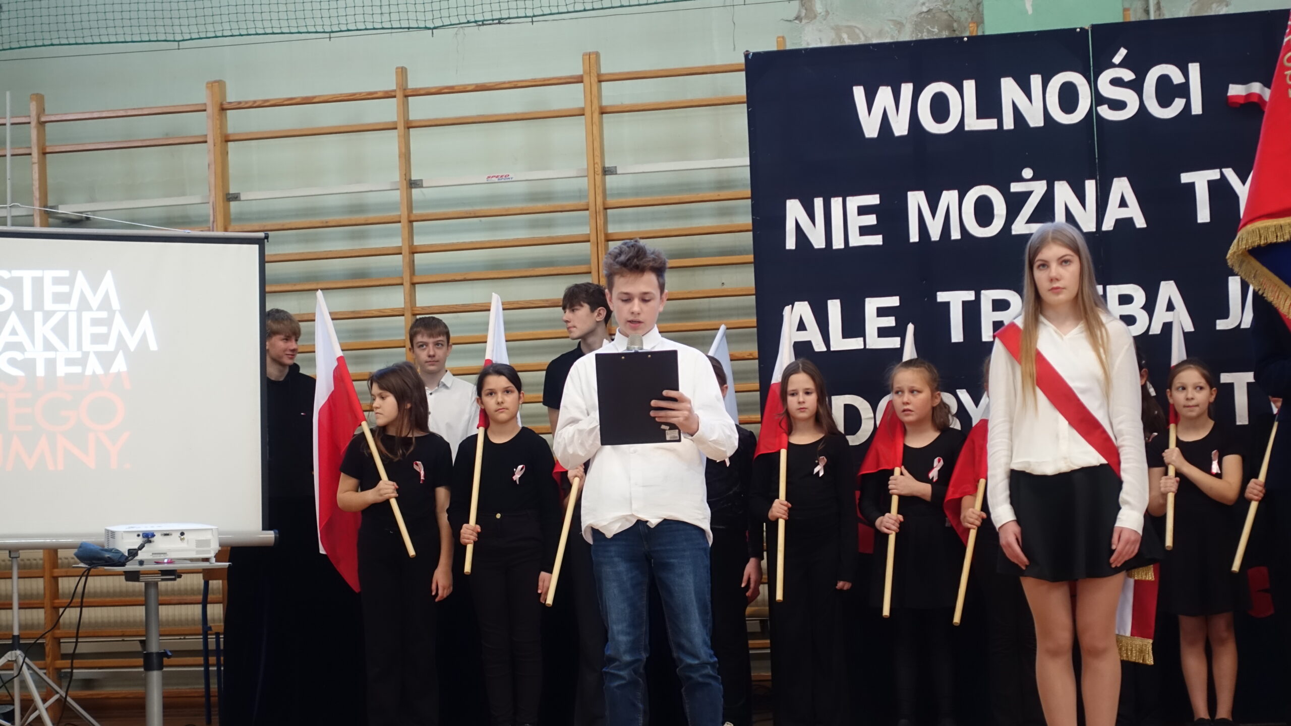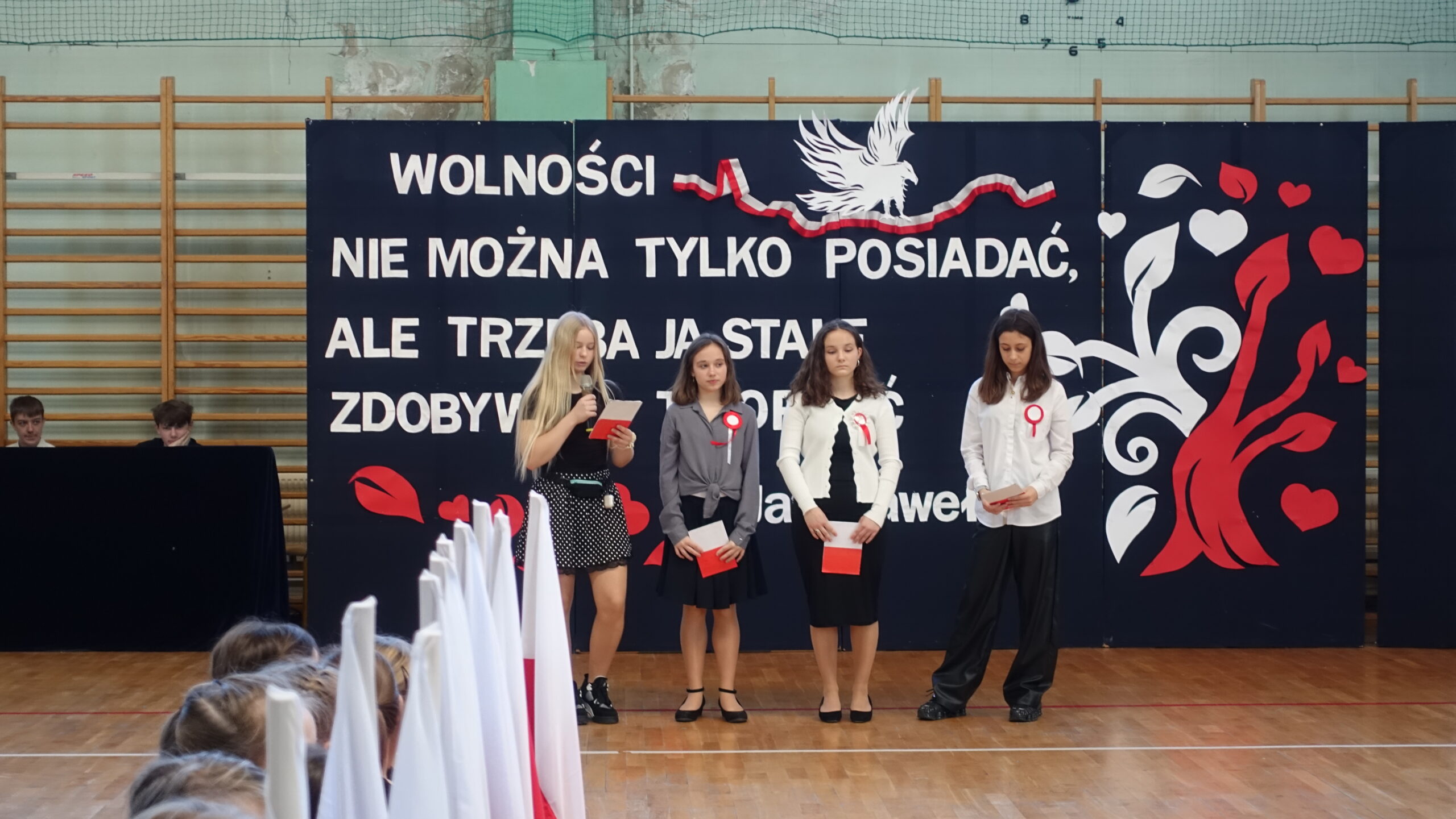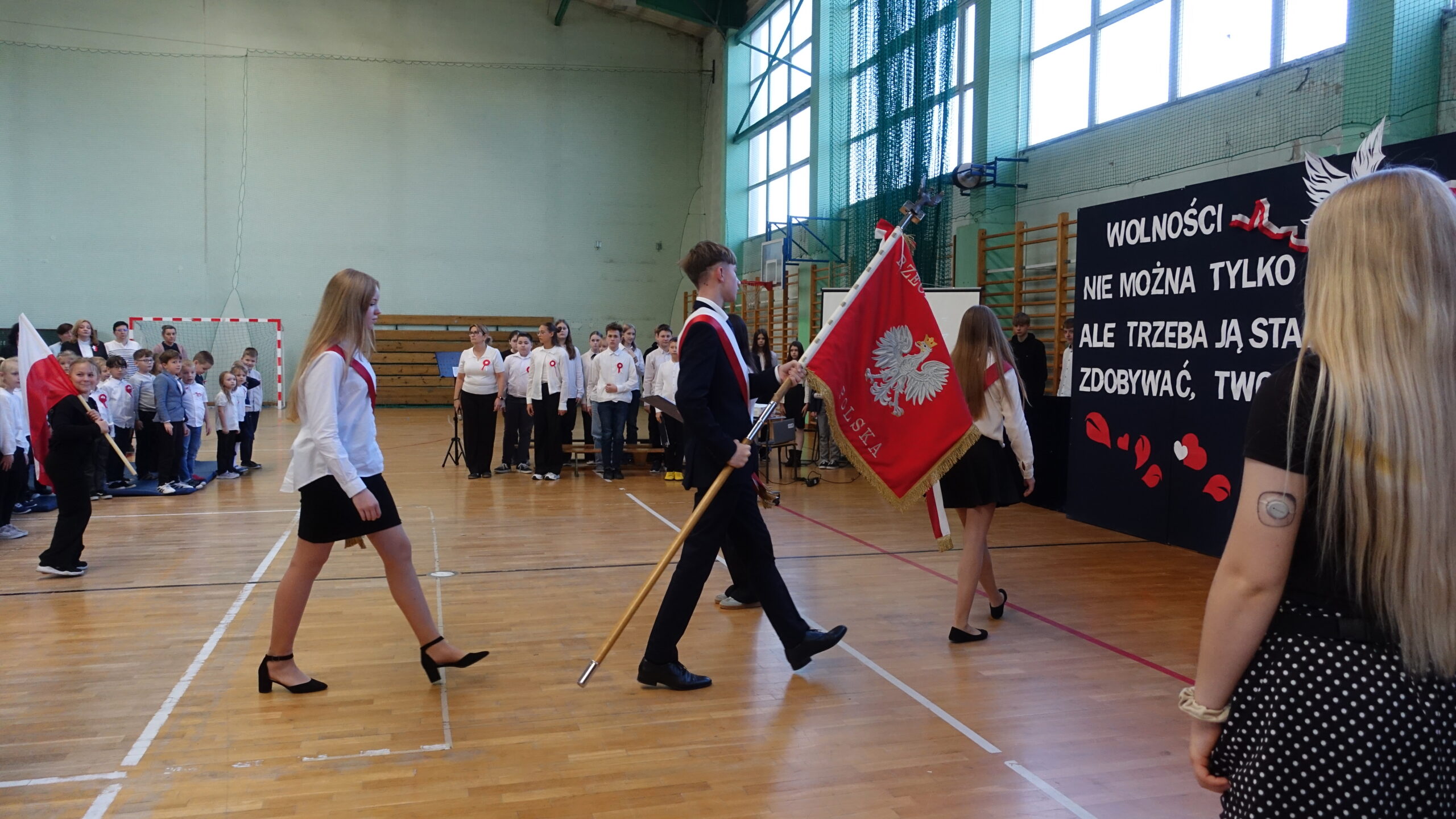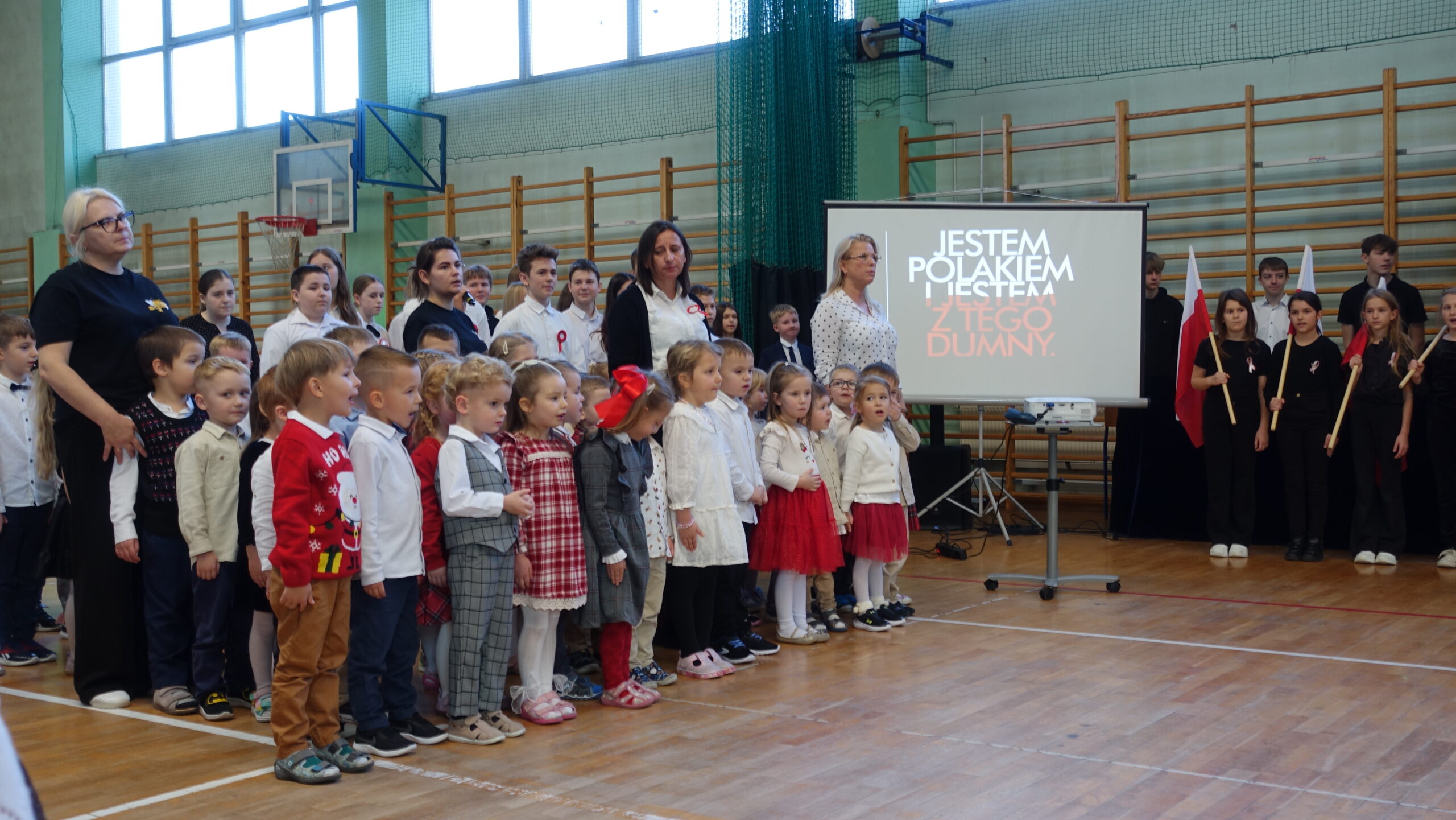 Dnia 10 listopada w naszej szkole odbyła się uroczystość upamiętniająca 107. rocznicę odzyskania przez Polskę niepodległości, która zgromadziła całą społeczność szkolną i przedszkolną, nauczycieli oraz uczniów. Następnie uczniowie klasy 7b z wychowawcą p. Ewą Przybylską oraz klasy 6b z wychowawcą p. Agnieszką Fudalej zaprezentowali montaż słowno-muzyczny, w którym przypomnieli najważniejsze wydarzenia z historii walk o wolność Ojczyzny, wzbogacając występ recytacjami, śpiewem oraz elementami inscenizacji, które pozwoliły lepiej zrozumieć trudną drogę Polaków do niepodległości. Ważnym momentem był taniec uczniów kl. 2a i 3b z białoczerwonymi flagami, które poruszały się w rytm podniosłej pieśni My, Pierwsza Brygada, tworząc piękne układy choreograficzne symbolizujące jedność i wolność. Uroczystość zakończyło wspólne odśpiewanie hymnu narodowego w ramach ogólnopolskiej akcji Szkoła do hymnu. Wydarzenie przebiegło w podniosłej i wzruszającej atmosferze, sprzyjającej refleksji nad historią Polski, dumie z narodowej tożsamości oraz wdzięczności wobec tych, którzy poświęcili swoje życie dla wolności.
