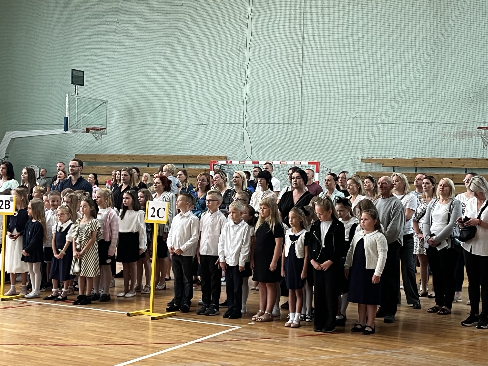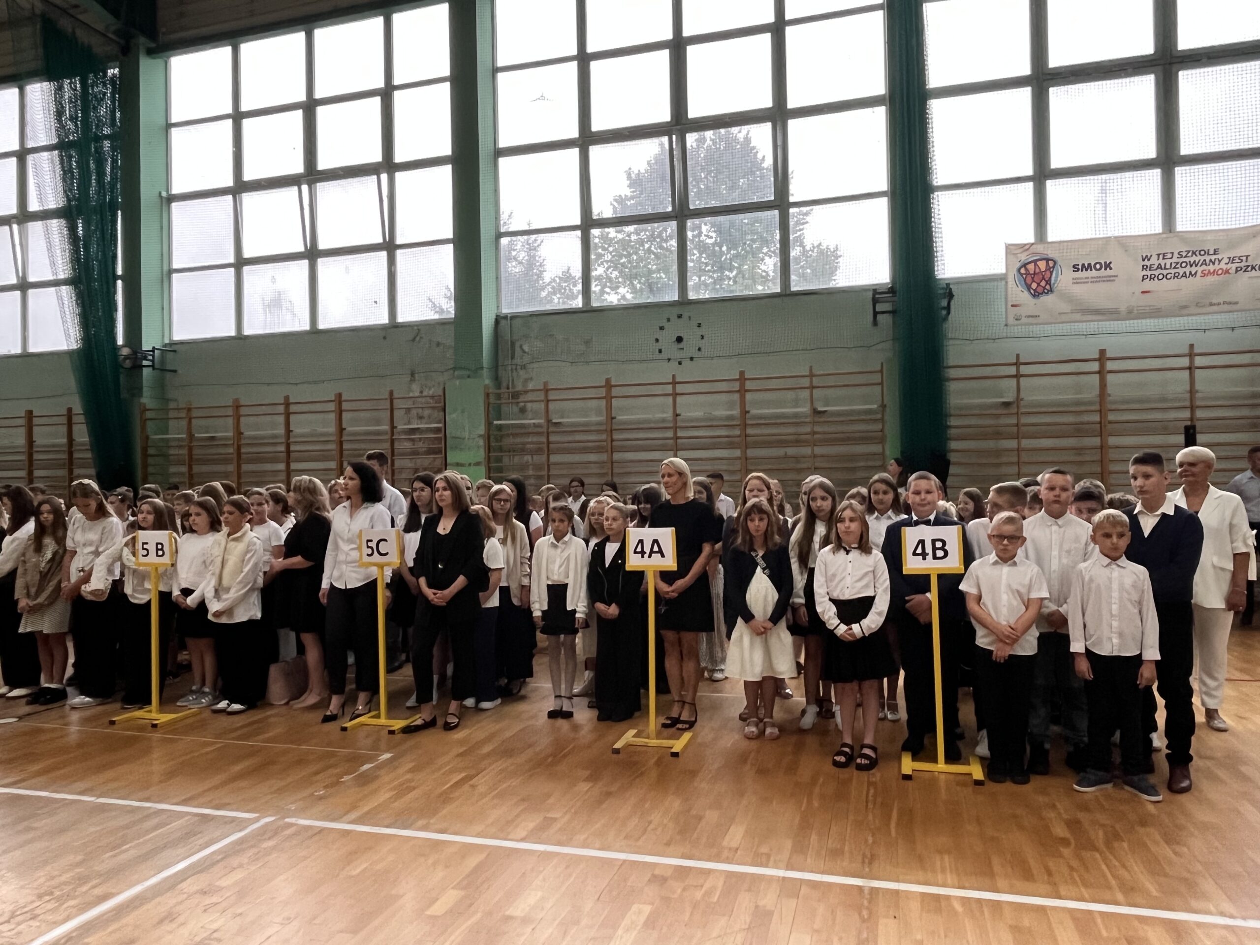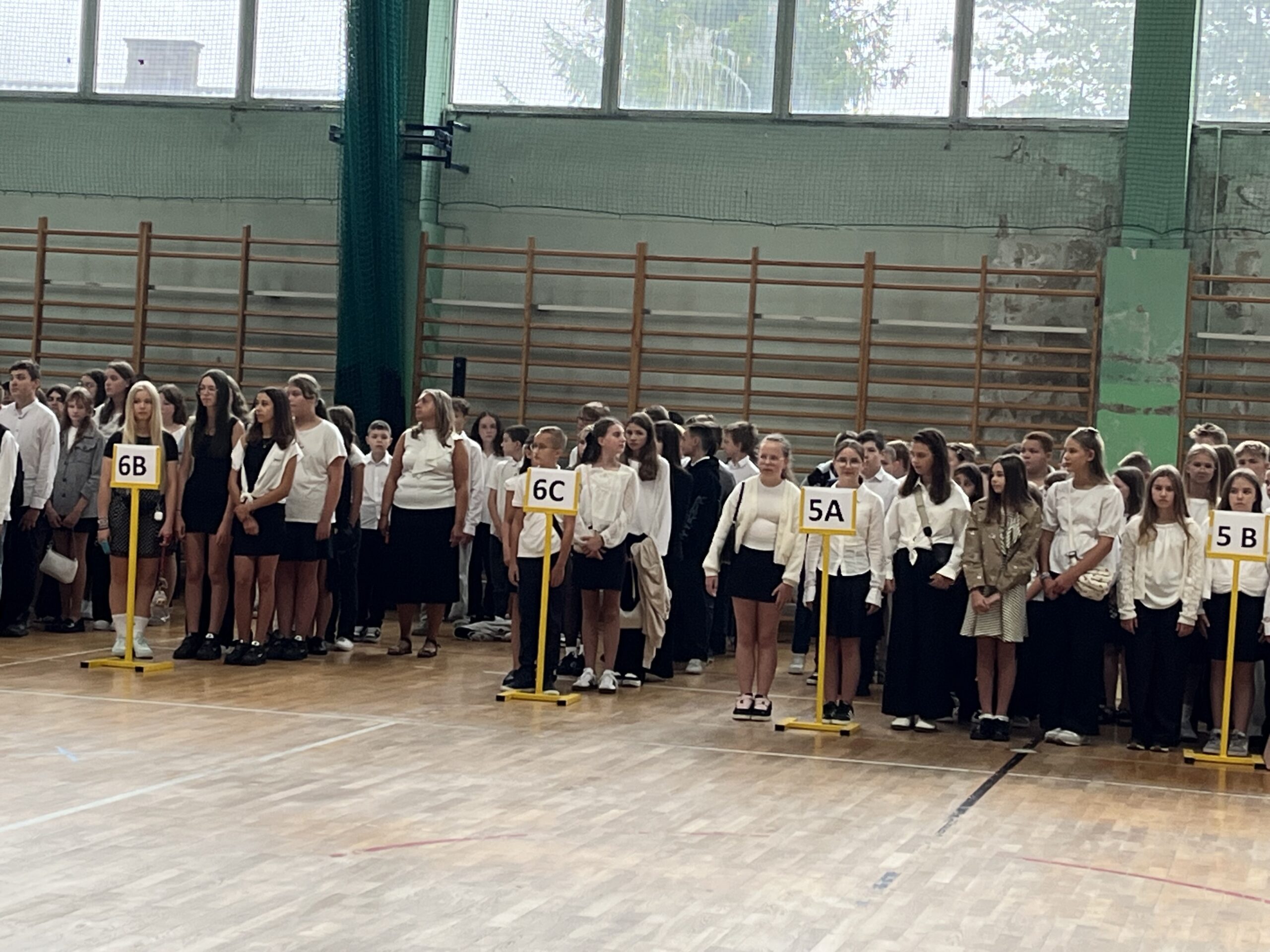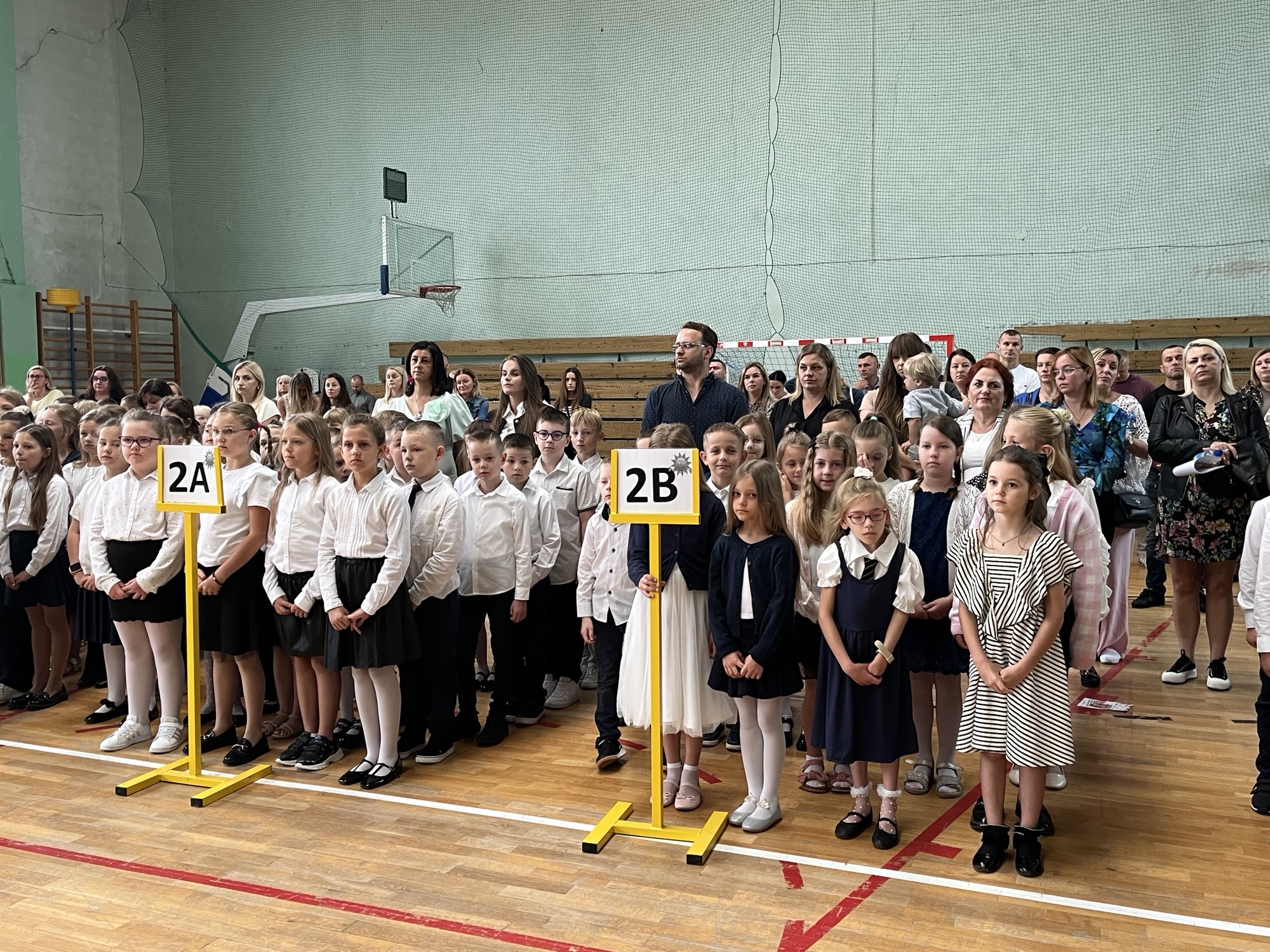 W pierwszej uczestniczyli uczniowie klas 2-8 szkoły podstawowej, a w drugiej uczniowie klas pierwszych. W tym dniu pierwszoklasiści złożyli ślubowanie w obecności rodziców i otrzymali pasowanie na ucznia z rąk Pani Dyrektor.