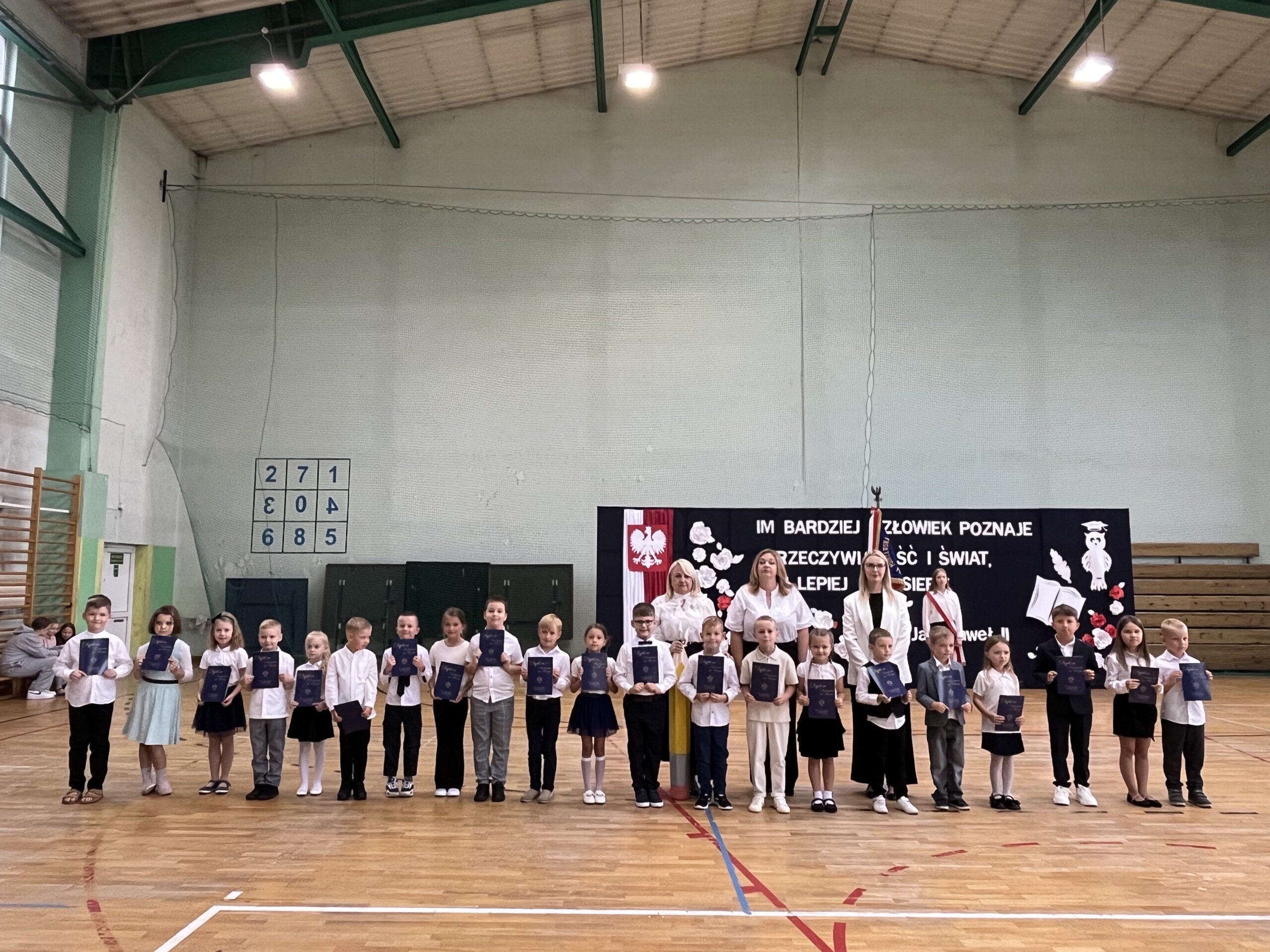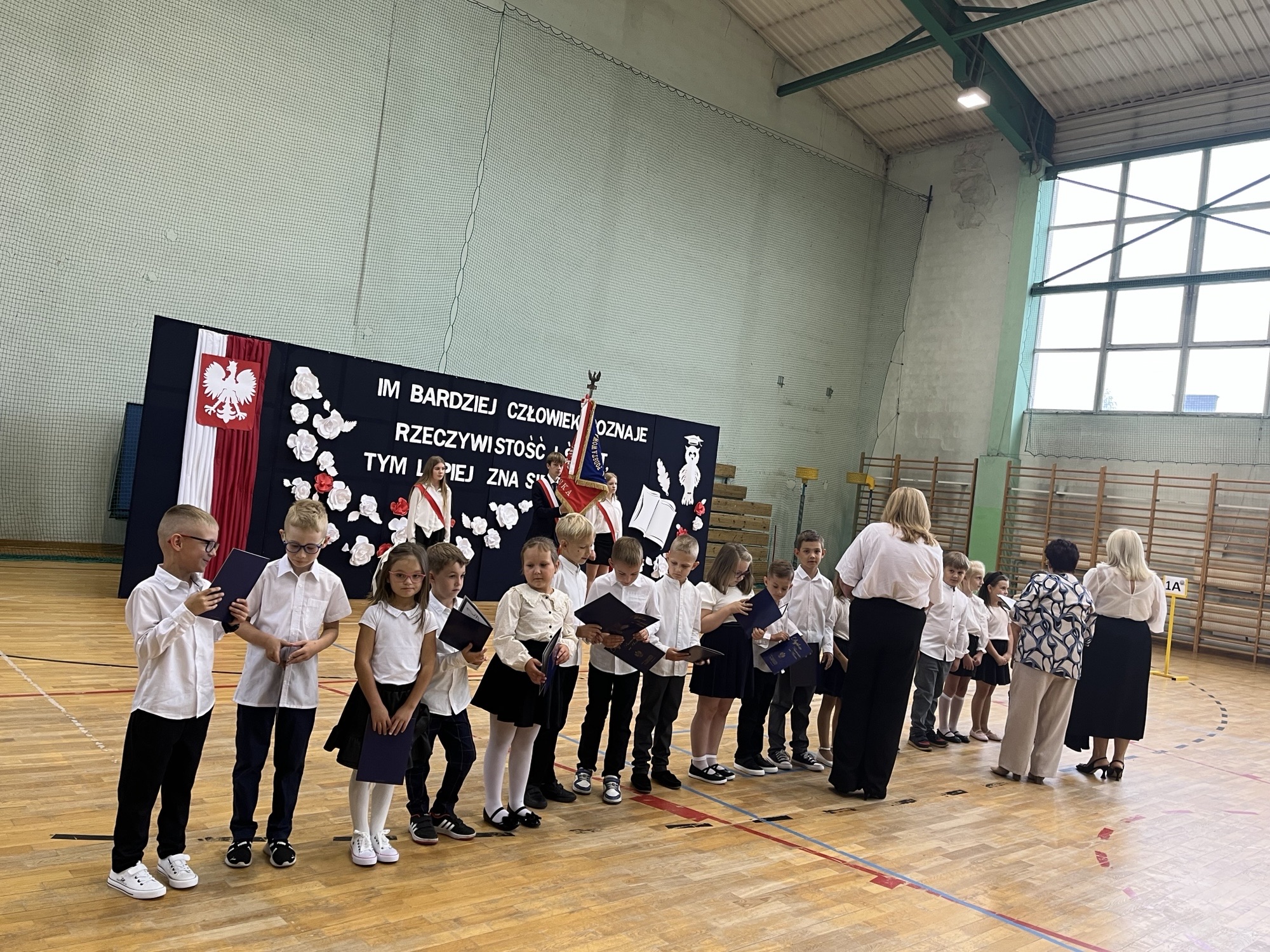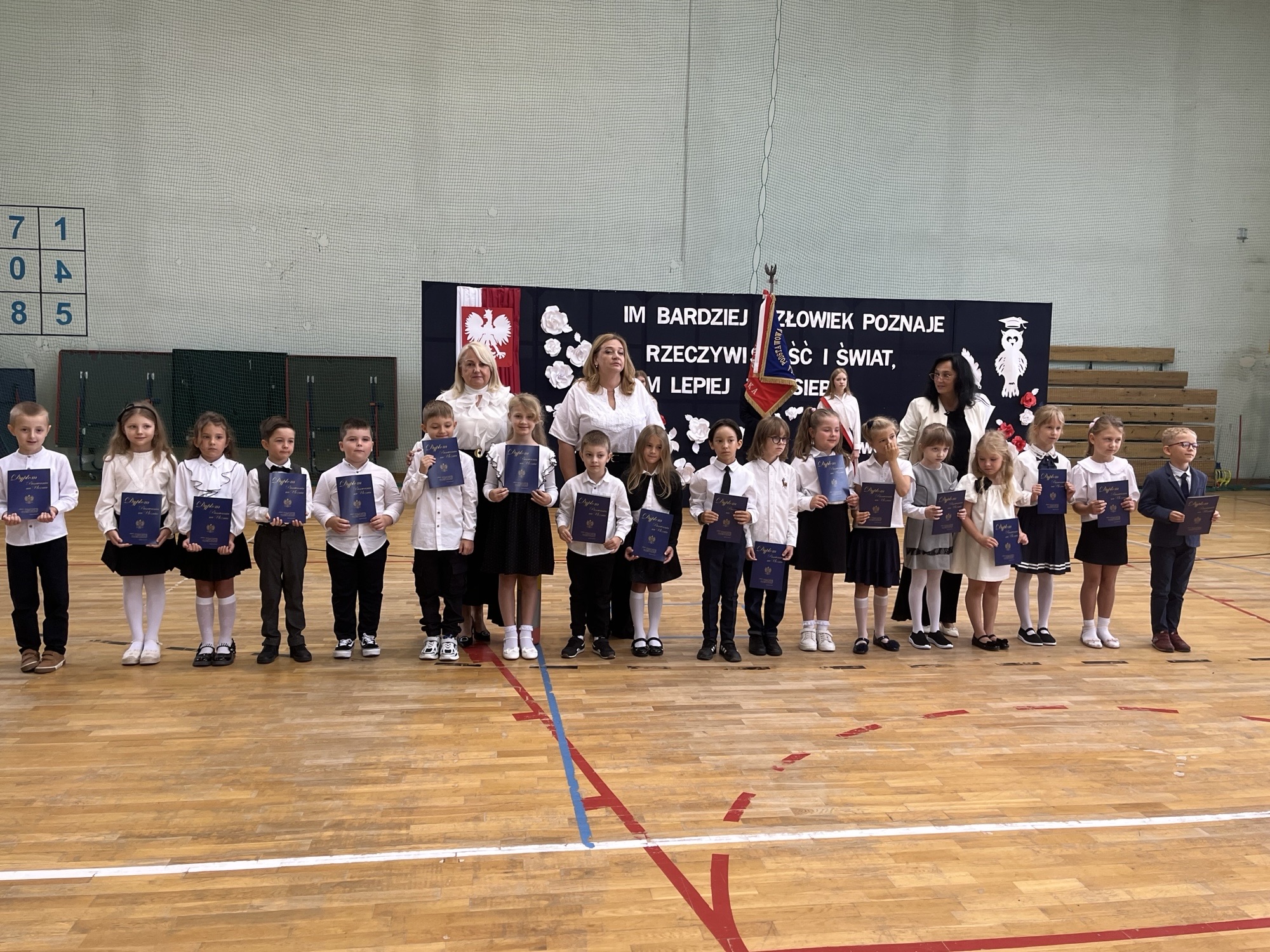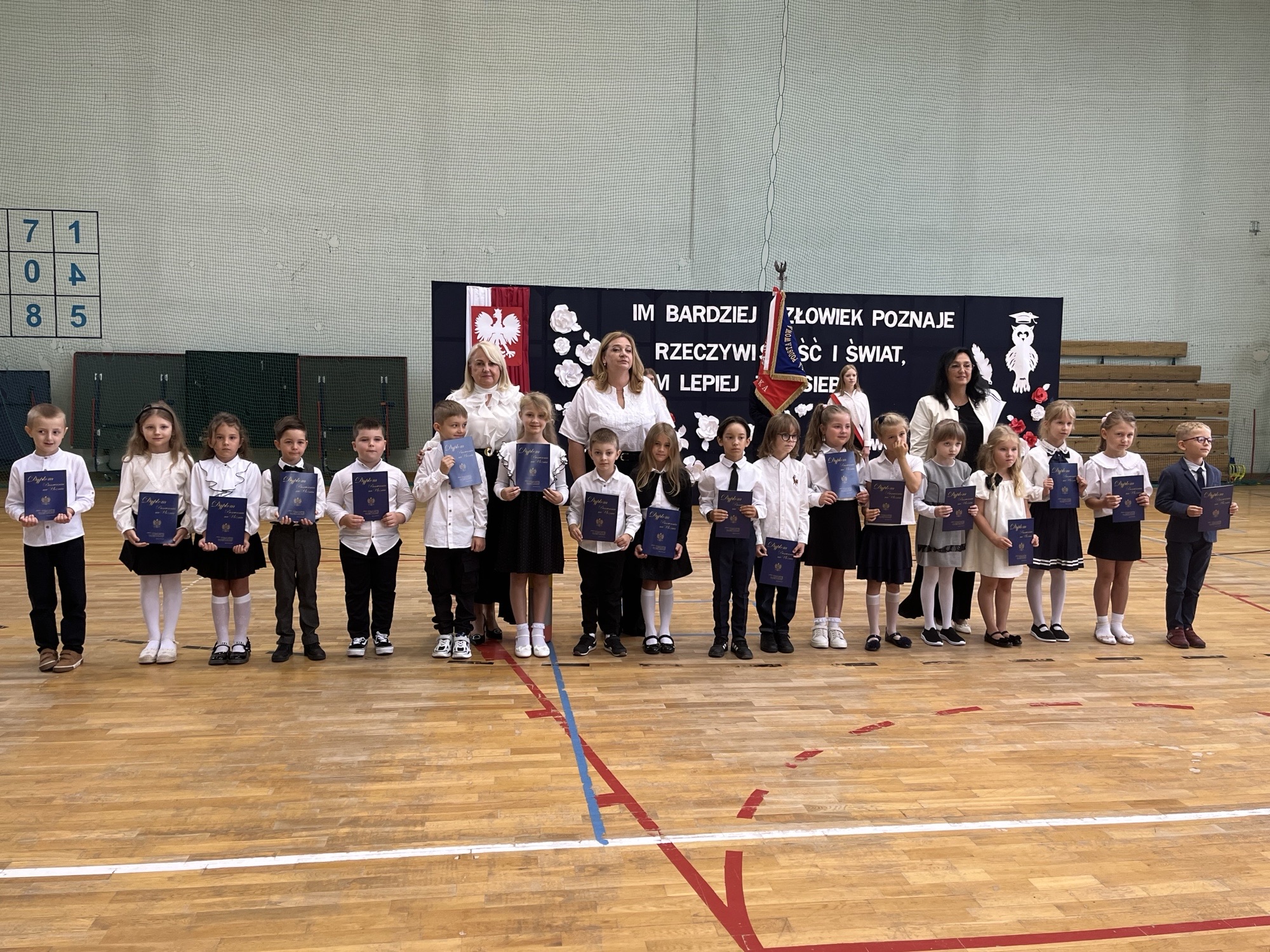 W pierwszej uczestniczyli uczniowie klas 2-8 szkoły podstawowej, a w drugiej uczniowie klas pierwszych. W tym dniu pierwszoklasiści złożyli ślubowanie w obecności rodziców i otrzymali pasowanie na ucznia z rąk Pani Dyrektor.