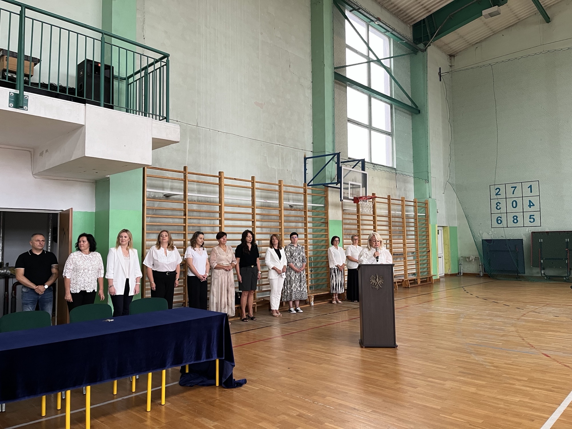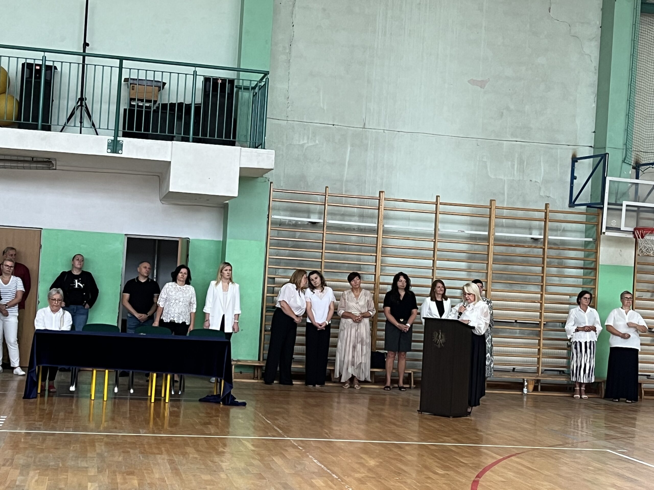 Część oficjalna, której przewodniczyła Pani Dyrektor Małgorzata Wyszyńska, miała miejsce w hali sportowej i była podzielona była na dwie części.