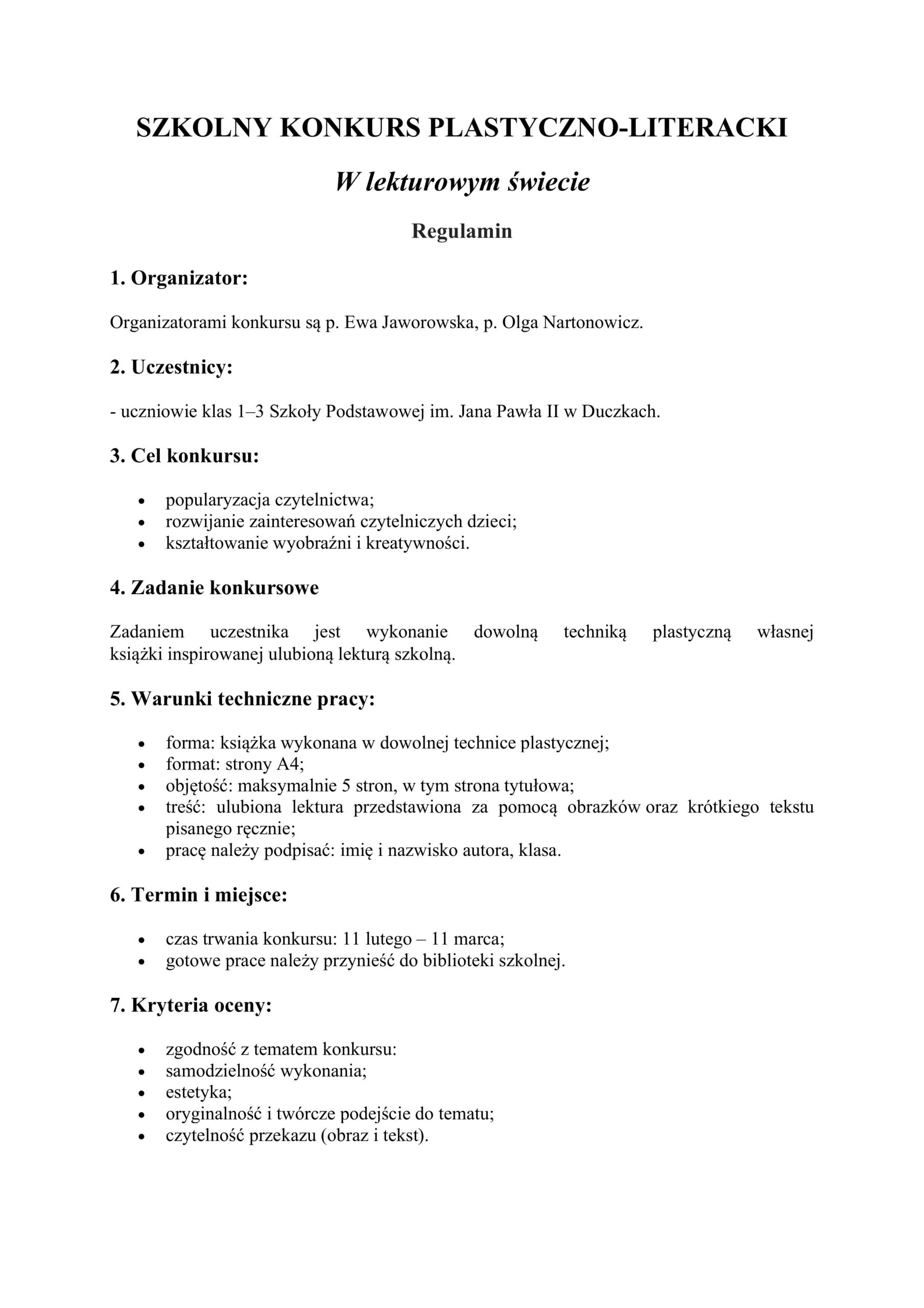 Szkolny konkurs plastyczno-literacki Opublikowano: 11 lutego 2026 Kategorie: Szkoła podstawowa Zespół Szkolno-Przedszkolny
