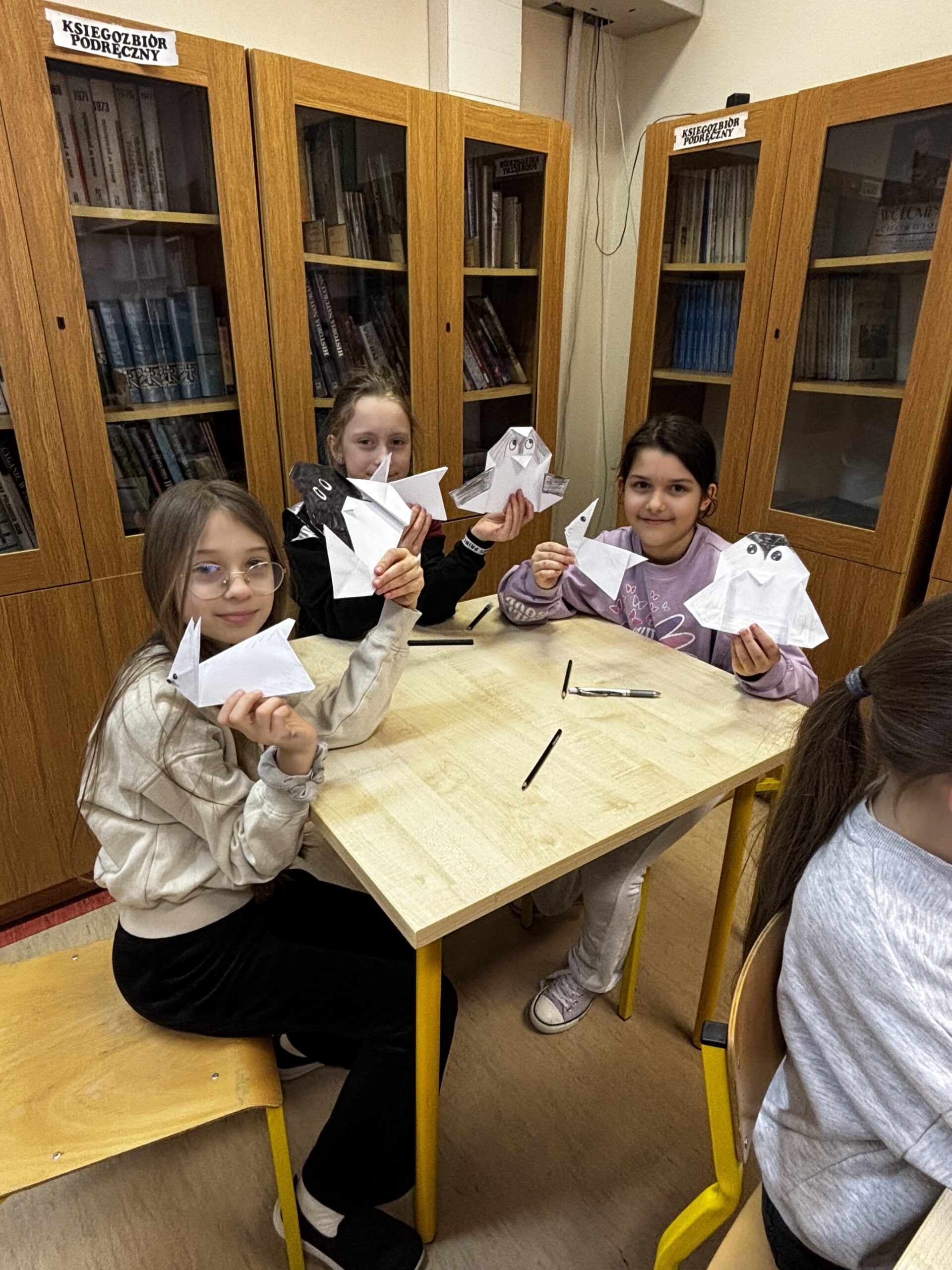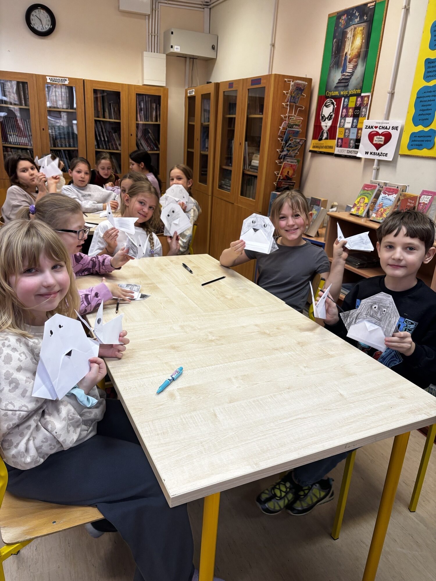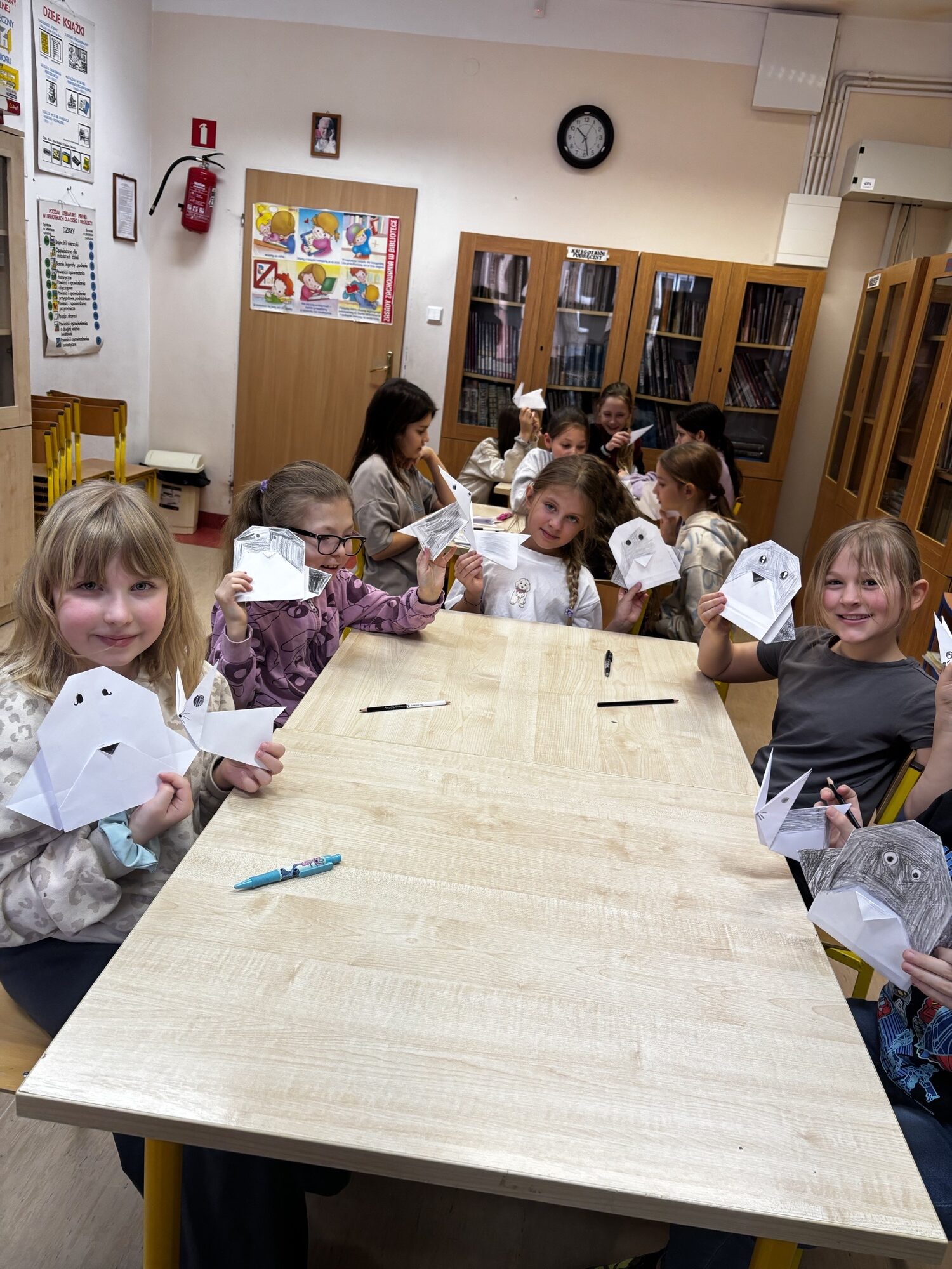 Podczas ostatniej lekcji bibliotecznej uczniowie klasy 3b mieli okazję połączyć naukę z kreatywną zabawą. Zajęcia odbyły się w miłej i twórczej atmosferze, a ich głównym tematem było origami – japońska sztuka składania papieru.