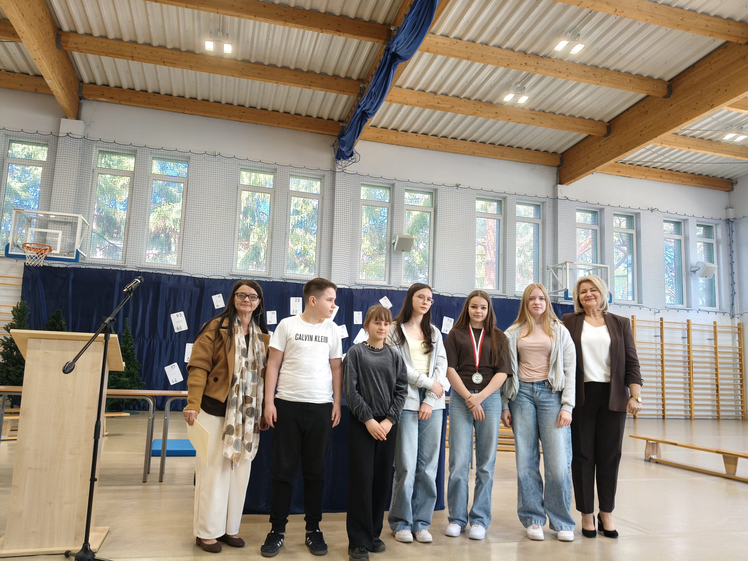 Do półfinału zakwalifikowało się ośmioro uczniów: Aleksandra Tlaga z klasy 8c, Julia Kukowska z klasy 8c, Alicja Wóltańska z klasy 8a, Wojciech Jędrasik z klasy 6c, Marcel Stępień z klasy 5a, Roksana Armanowska z klasy 5a, Filip Kielczyk z klasy 5c i Stanisław Wiśniewski z klasy 5c. W szkolnej drużynie jako zawodnik rezerwowy uczestniczył Piotr Wielgo z klasy 7b. Uczniowie wzięli udział w 5 konkurencjach: Krzyżak, Sokole Oko, Prymus, Szeryf, Olimpijczyk. W każdej musieli wykazać się biegłą znajomością tabliczki mnożenia i sprawnością fizyczną, gdyż w każdej konkurencji liczył się także czas prawidłowego ułożenia kart.